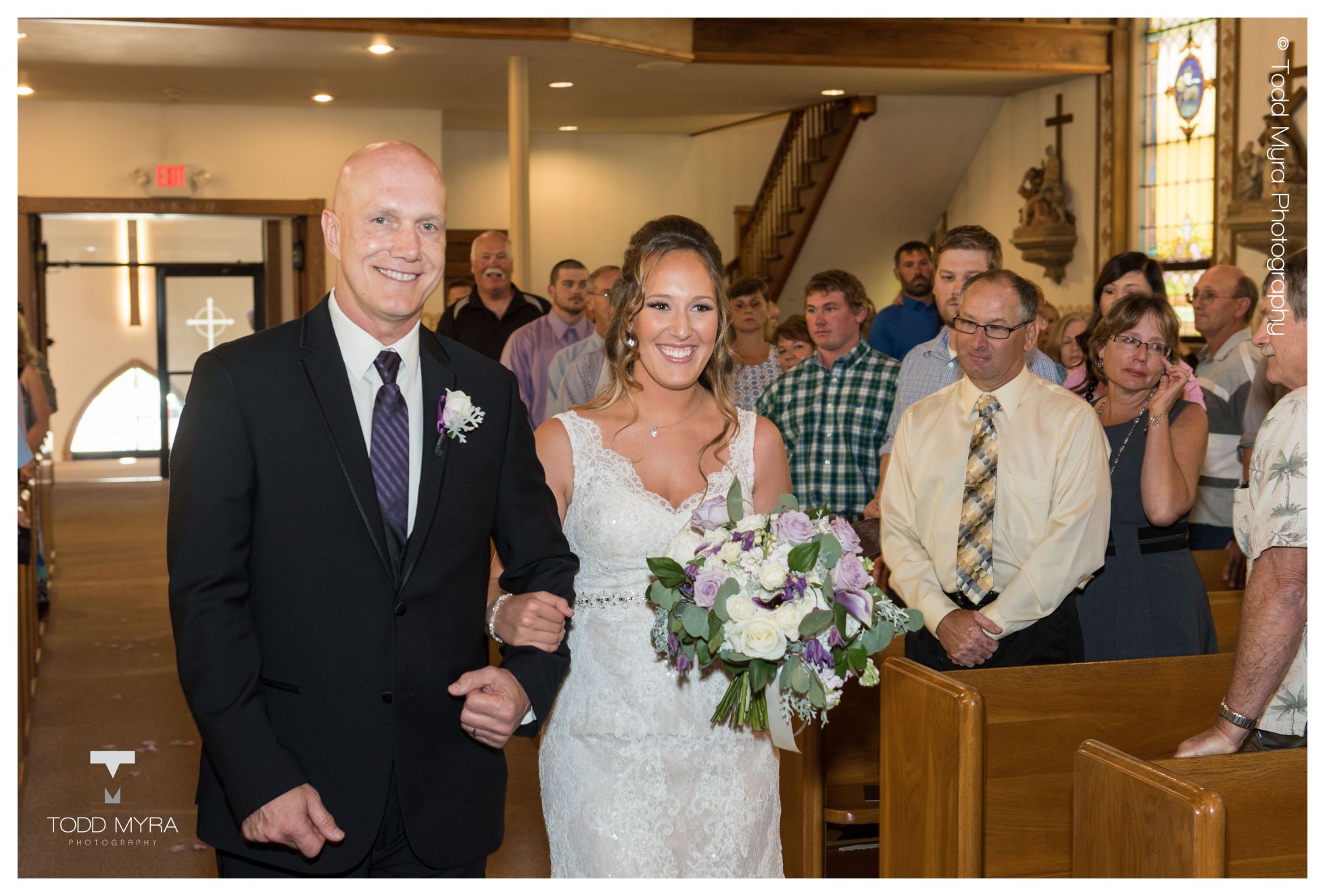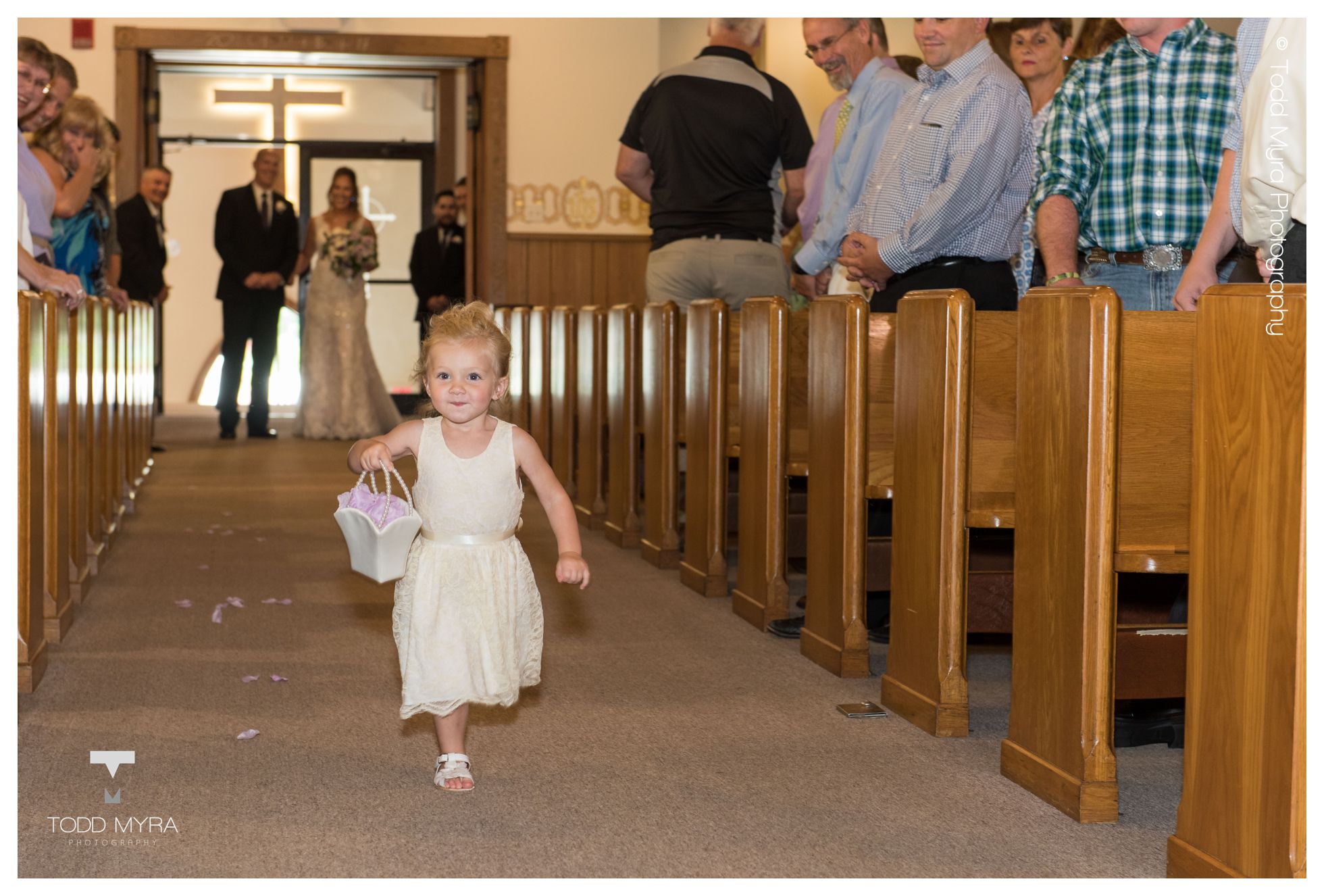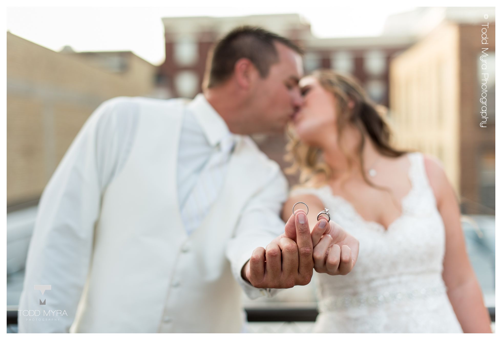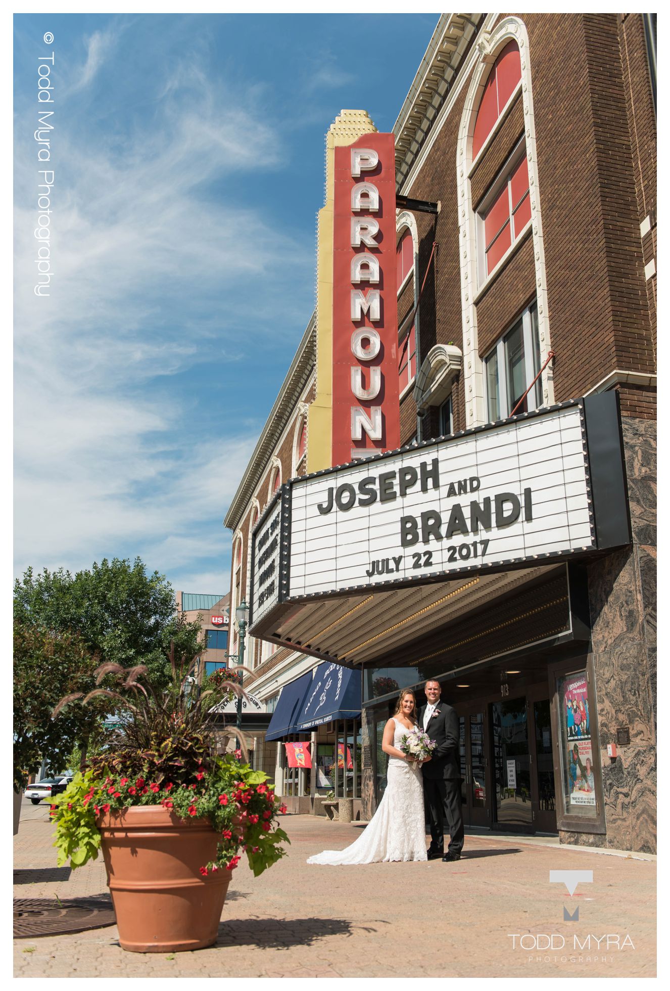 Brandi & Joe Wedding December 30, 2017 We were honored to get to be a part of Brandi and Joe's wedding- a beautiful couple that got married on a lovely summer day in July. After getting her hair done at Mantra Salon, Brandi got ready in the pretty bridal suite at Regency 912. Downtown St. Cloud made a great backdrop for many fun pictures with the couple and bridal party. Their flower girl, Presley, was adorable. Many of you know from being at weddings that it's a bit of a toss up if the flower girl is going to make it down the isle- especially when she is only two years old. When the big moment came, Brandi told Presley to run down the isle. Presley said, "Run?" Brandi said, "Yes!" And Presley then ran as fast as she could down the isle with flower petals flying out of her little basket. It was such a cute moment! The ceremony was held in Rockville where Father Ron gave a very practical, interesting message where he went around the sanctuary as if he was geocaching and finding various treasures that were symbols to speak about how to have a healthy marriage. The best is when he started blowing bubbles, reminding us all to keep the fun in marriage! Regency 912 provided a beautiful reception and delicious food. The celebration continued through the evening with music and dancing provided by Music In Motion. Congratulations Brandi and Joe!